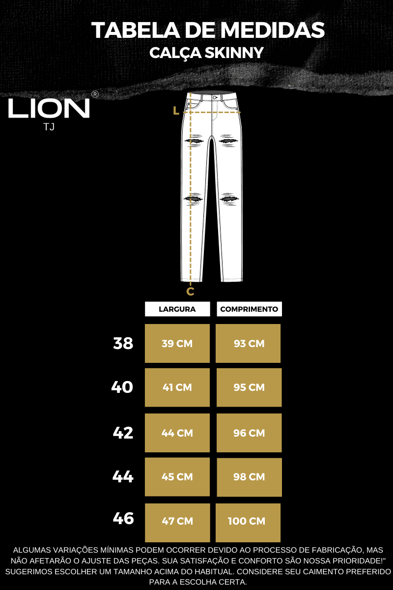 O MODELO DA FOTO TEM: 1.65 DE ALTURA, PESA 70KG (O TAMANHO DA PEÇA USADA NA FOTO É 38)
